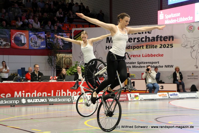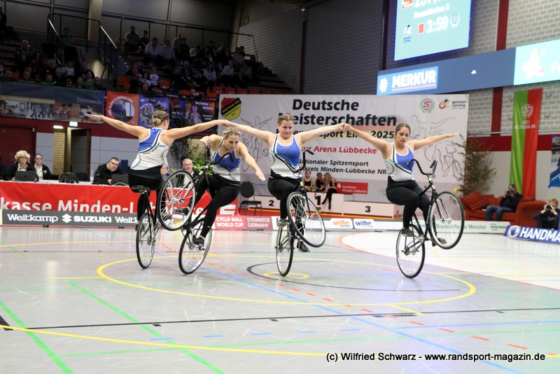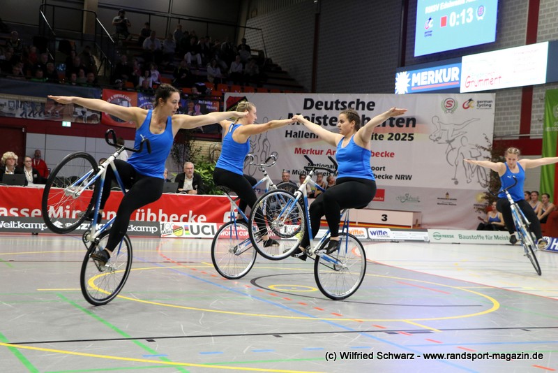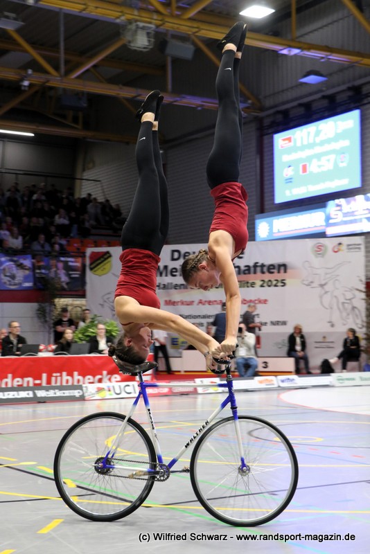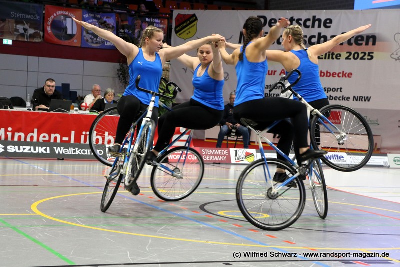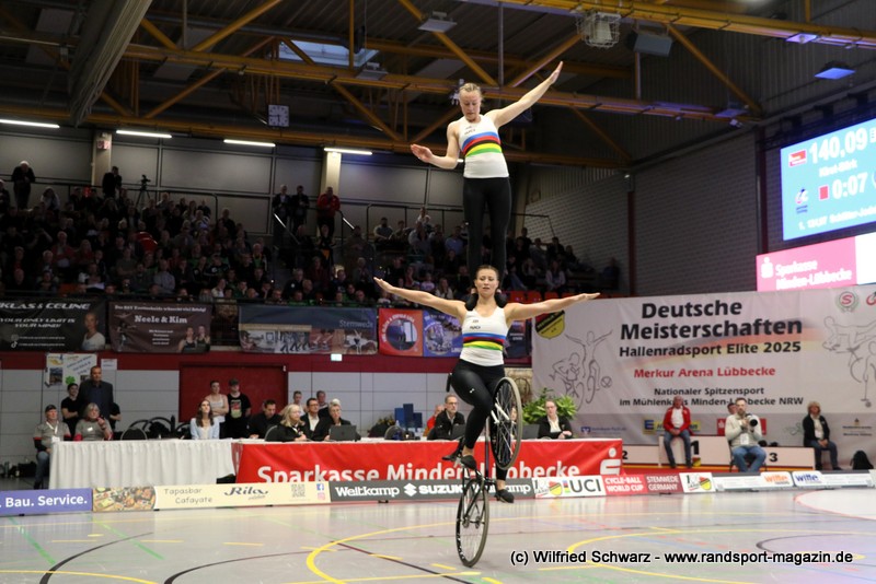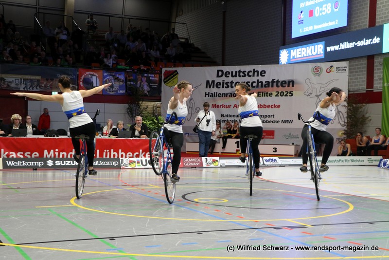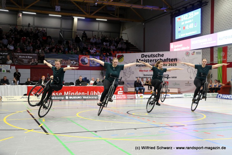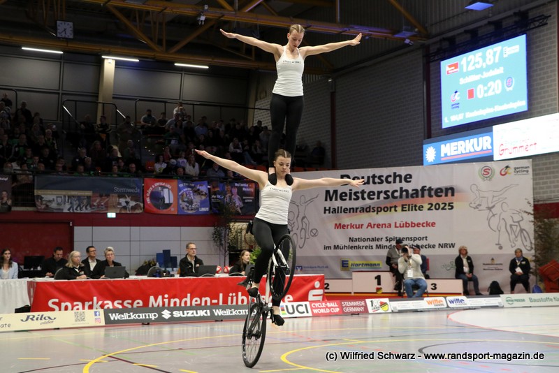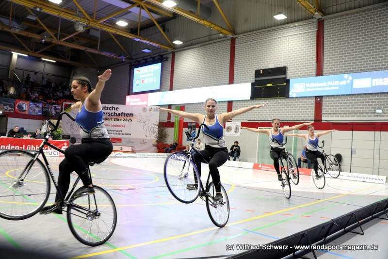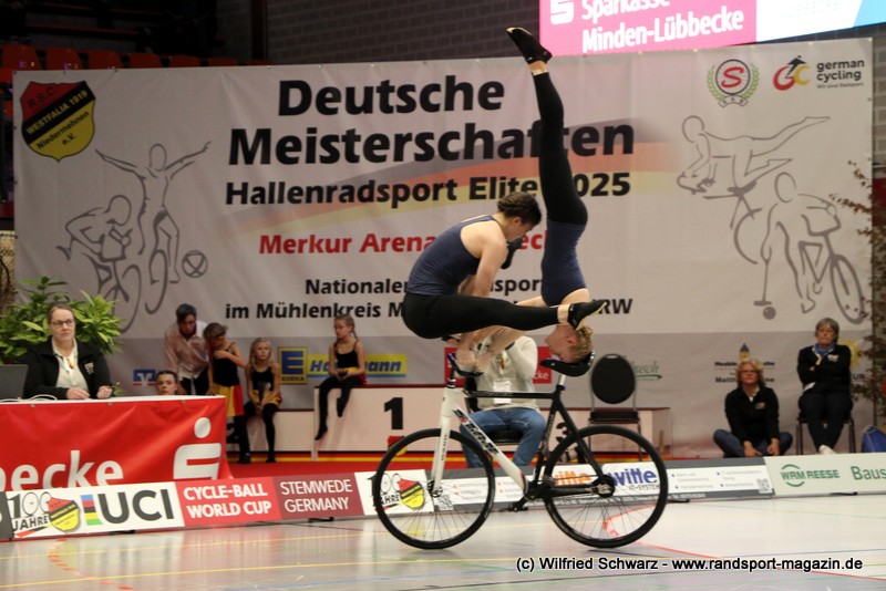 Hier unsere Bildergalerie von den Finals im 2er Kunstrad Frauen, 4er Kunstrad Frauen, 1er Männer sowie dem Radball-Endspiel zwischen Stein 1 und Stein 2 am 18.10.2025 in der Merkur-Arena von Lübbecke.