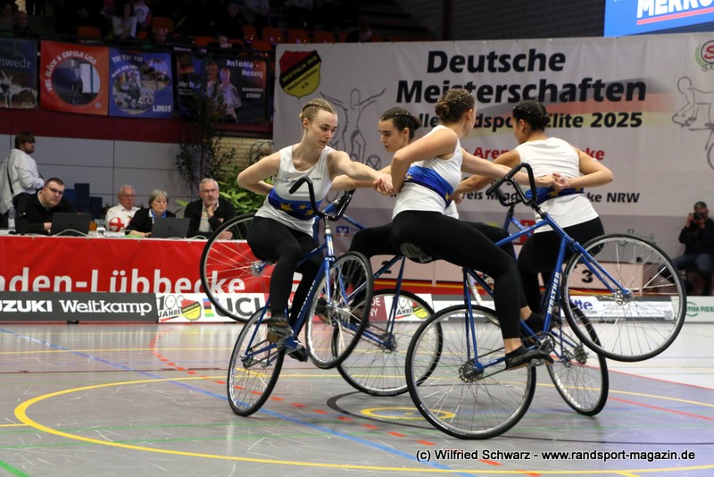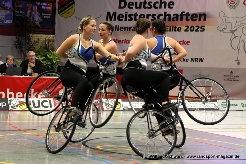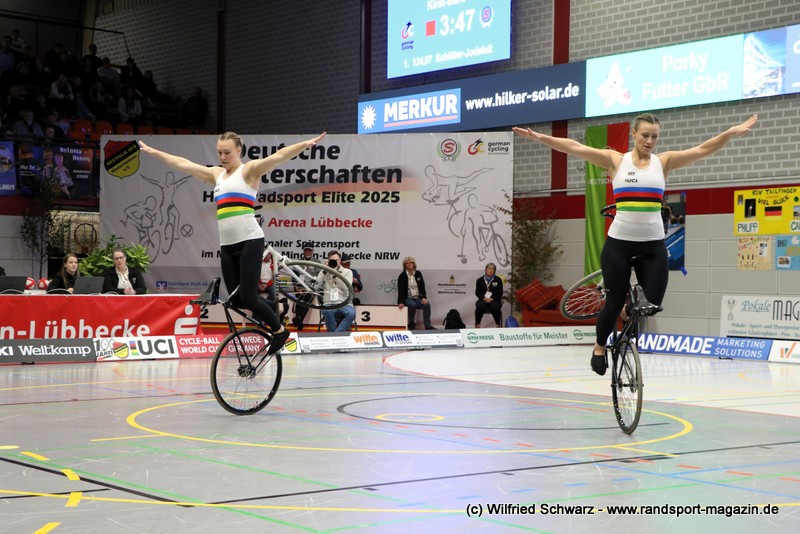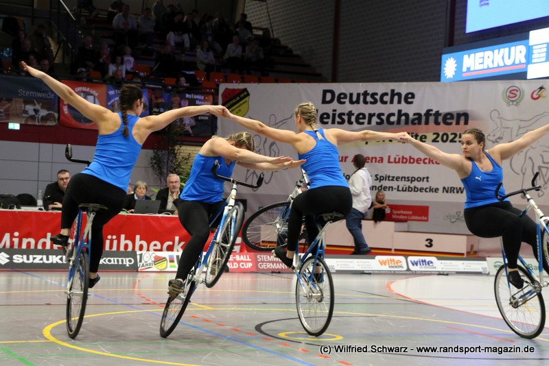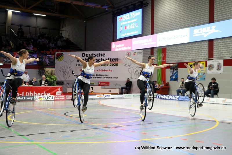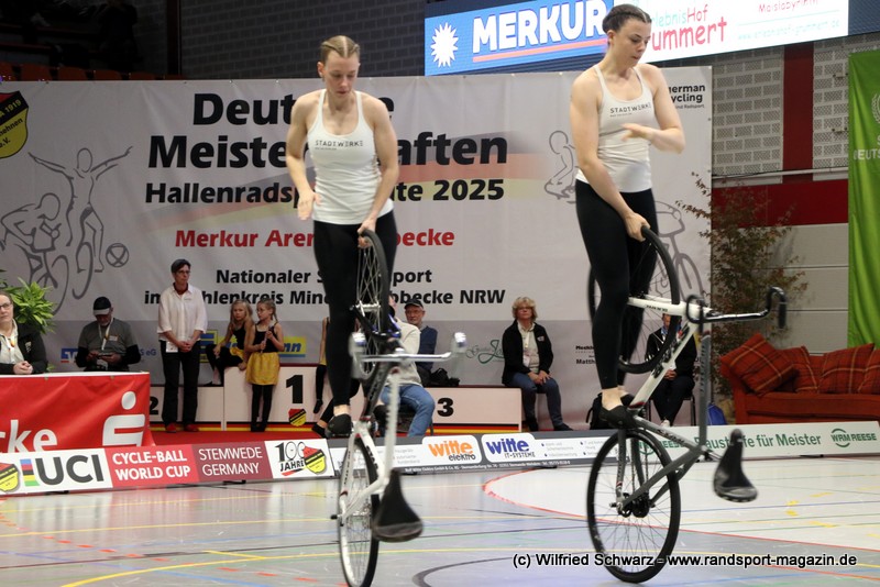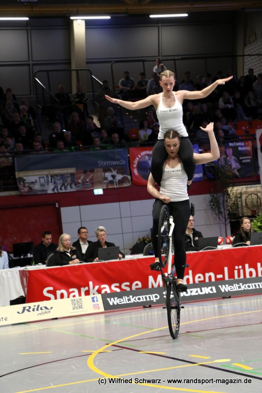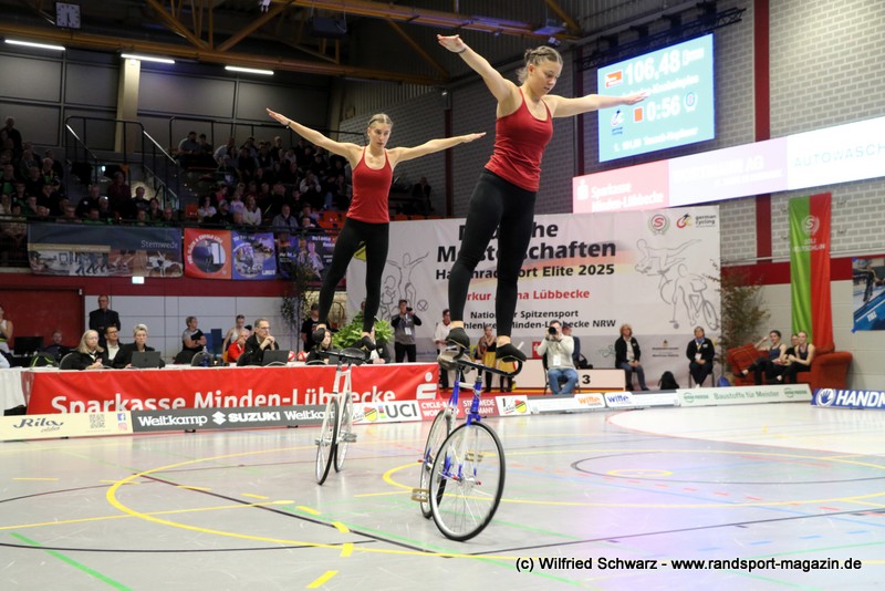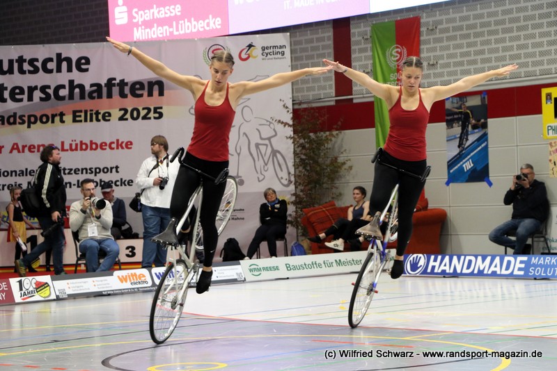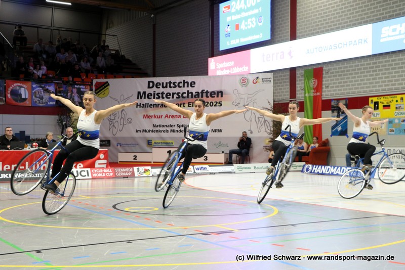 Hier unsere Bildergalerie von den Finals im 2er Kunstrad Frauen, 4er Kunstrad Frauen, 1er Männer sowie dem Radball-Endspiel zwischen Stein 1 und Stein 2 am 18.10.2025 in der Merkur-Arena von Lübbecke.