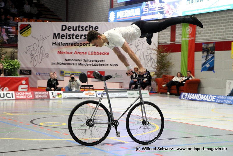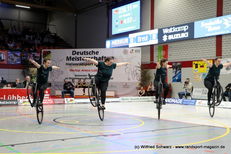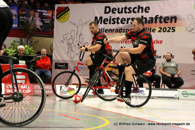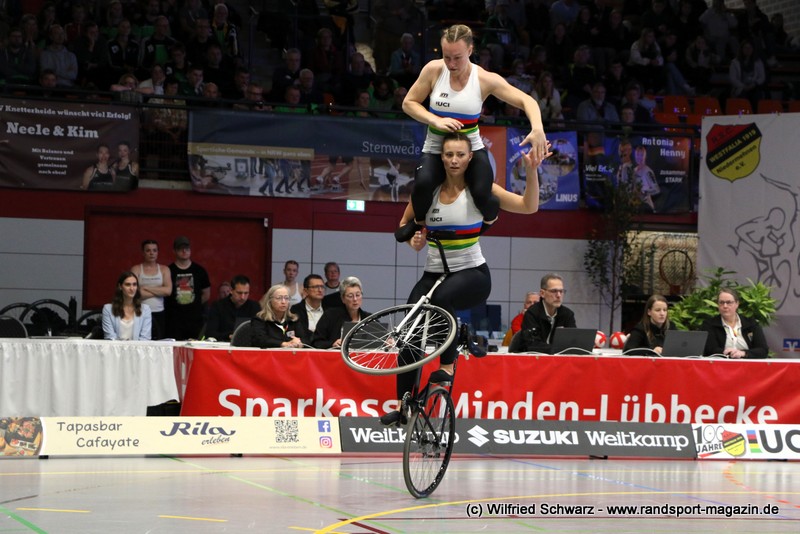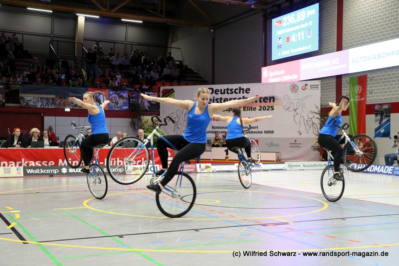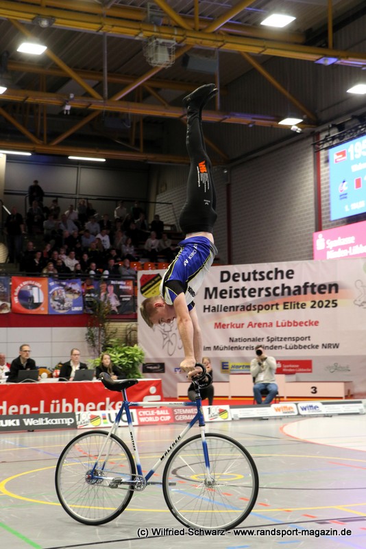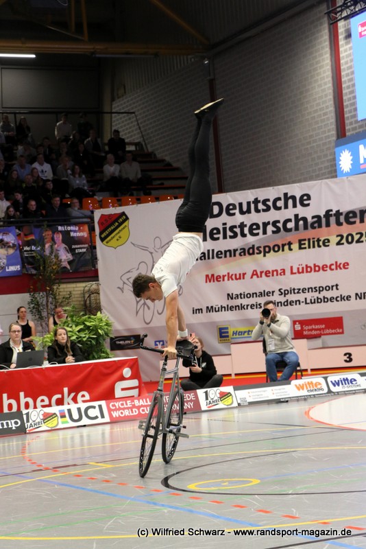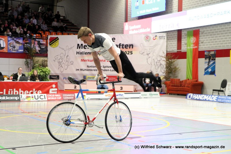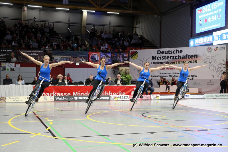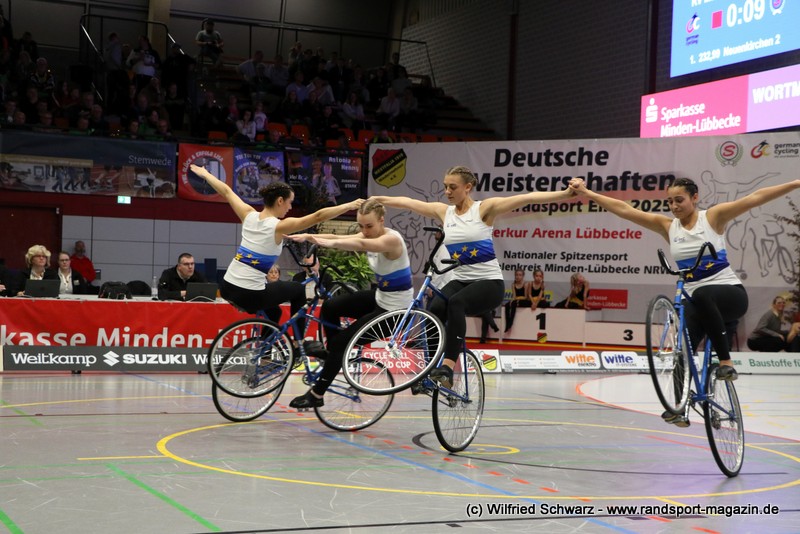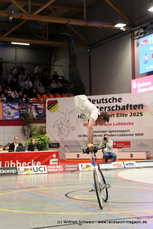 Hier unsere Bildergalerie von den Finals im 2er Kunstrad Frauen, 4er Kunstrad Frauen, 1er Männer sowie dem Radball-Endspiel zwischen Stein 1 und Stein 2 am 18.10.2025 in der Merkur-Arena von Lübbecke.
