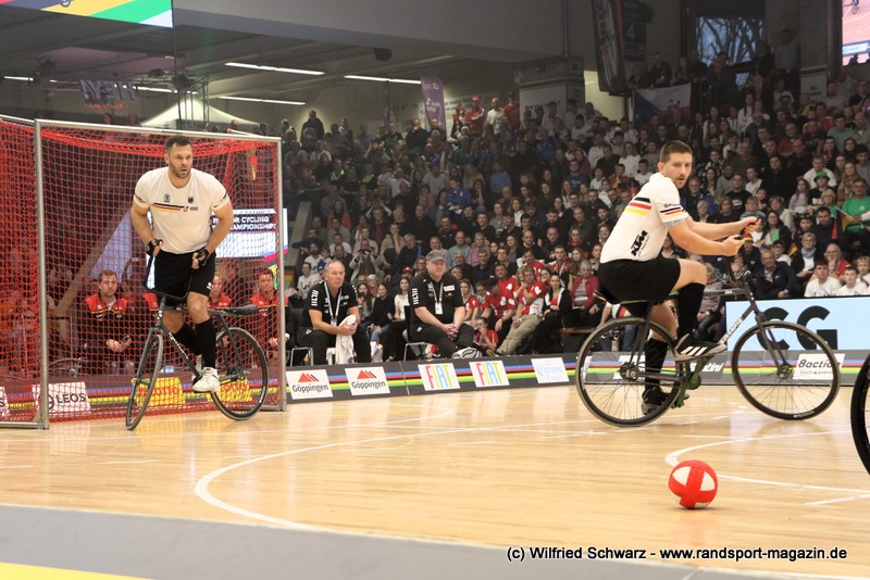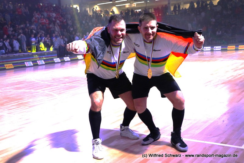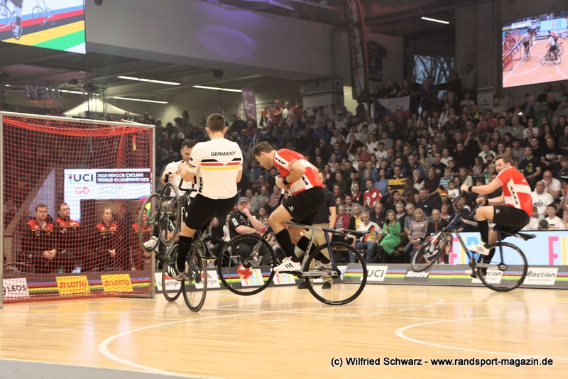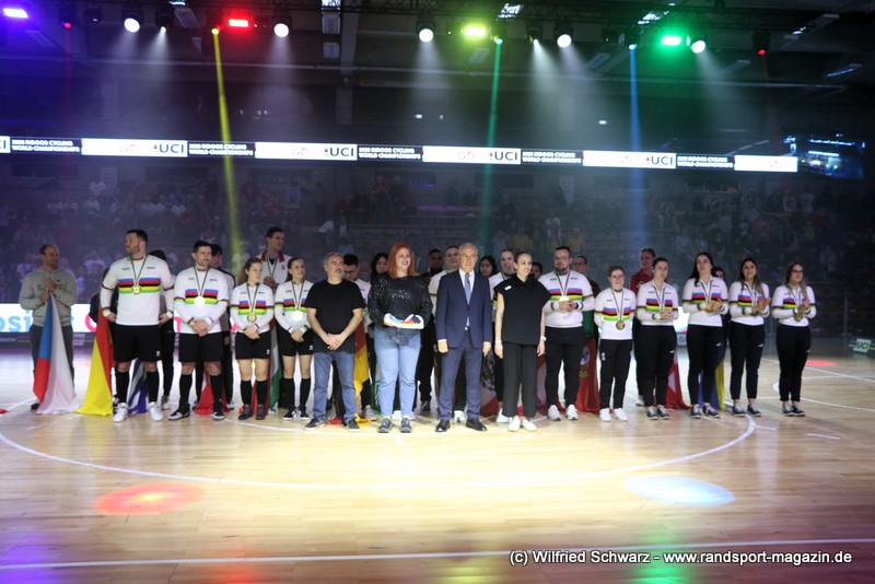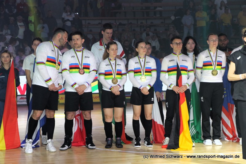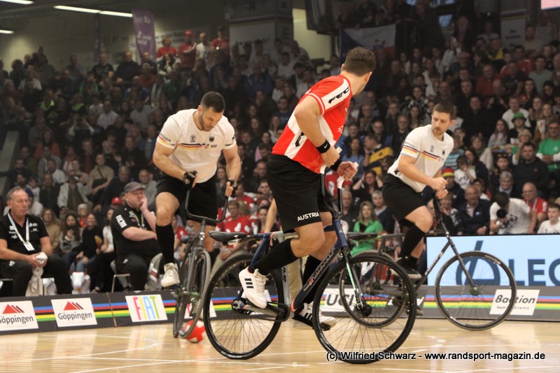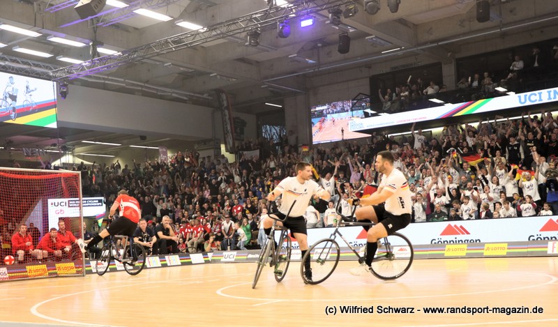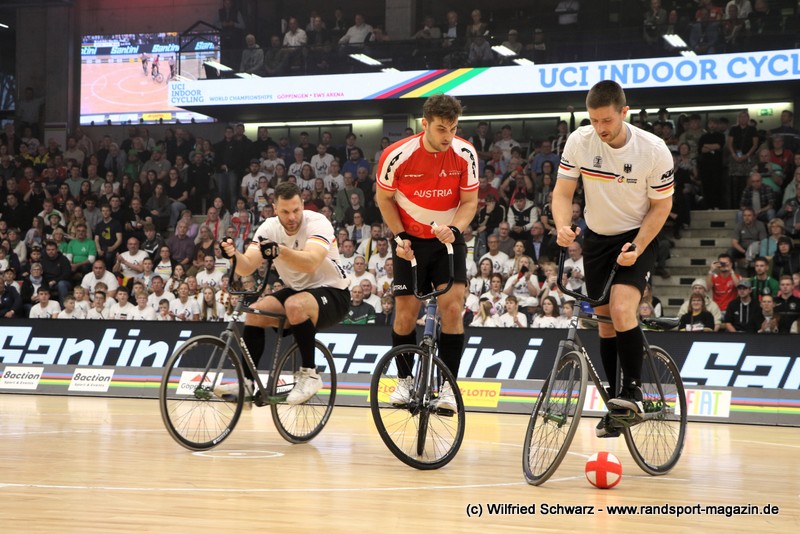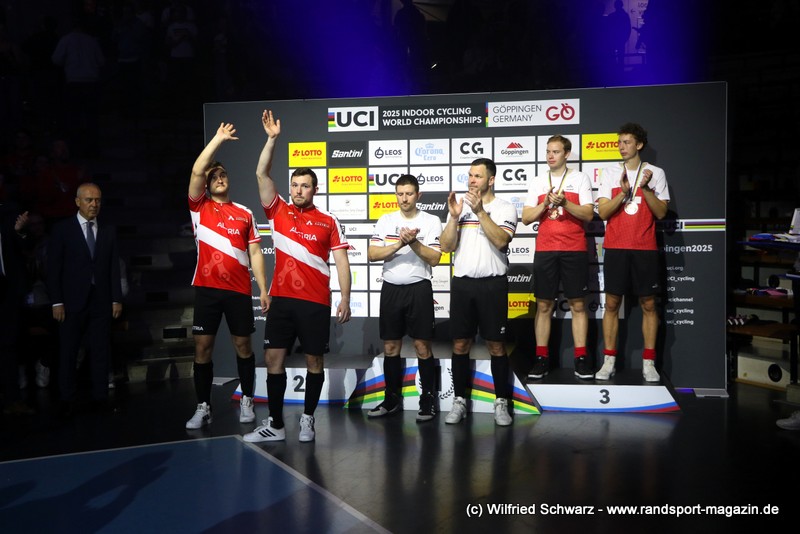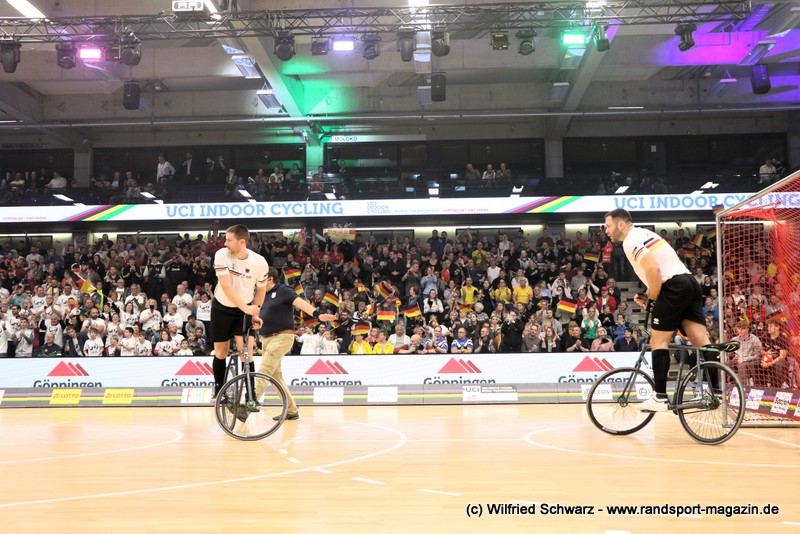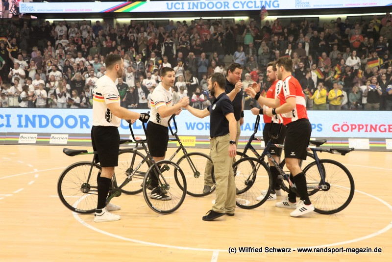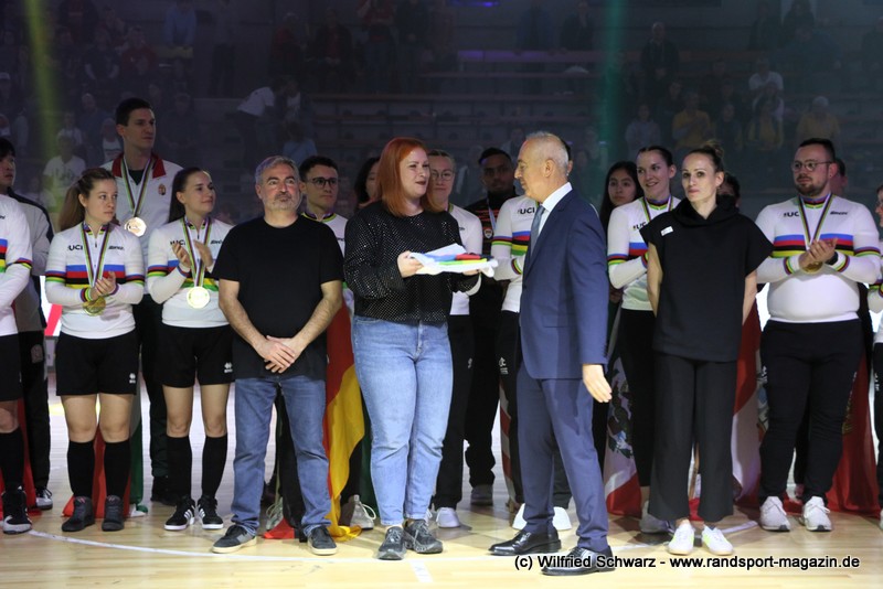 Hier unsere (letzte) Bilder-Galerie – No. 8 von der UCI-Hallenradsport-Weltmeisterschaft vom 07. – 09. November 2025 in Göppingen – Radball Finale GER-AUT + Closing Ceremony
