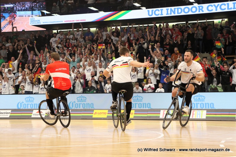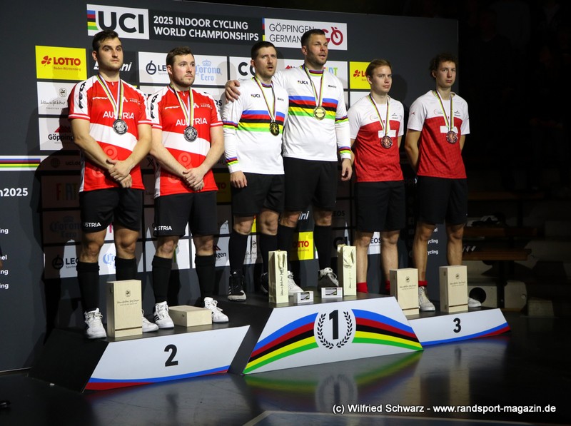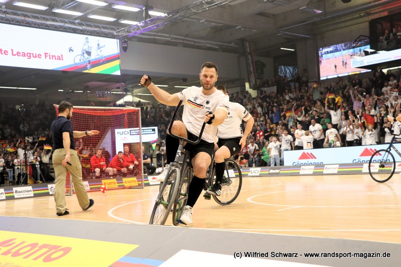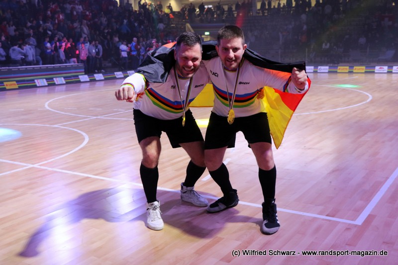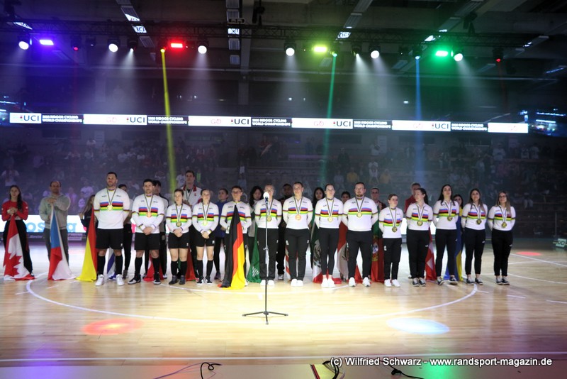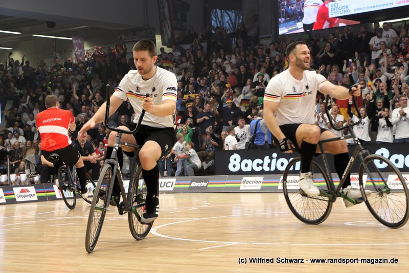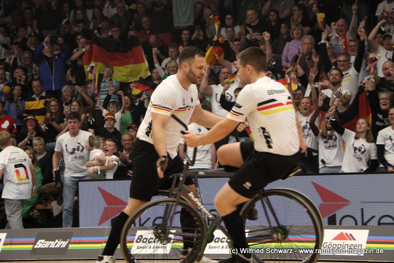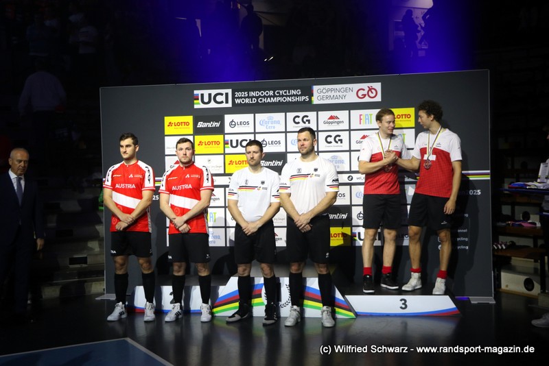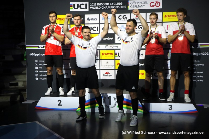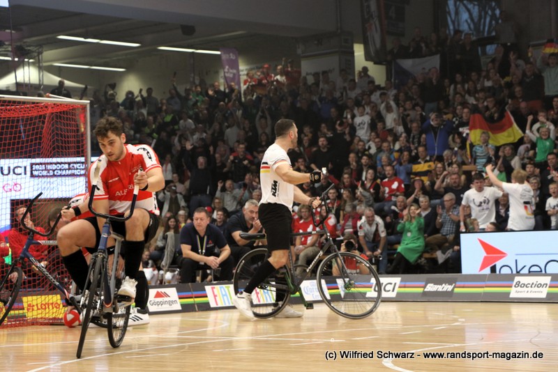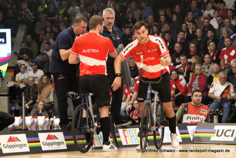Hier unsere (letzte) Bilder-Galerie – No. 8 von der UCI-Hallenradsport-Weltmeisterschaft vom 07. – 09. November 2025 in Göppingen – Radball Finale GER-AUT + Closing Ceremony
