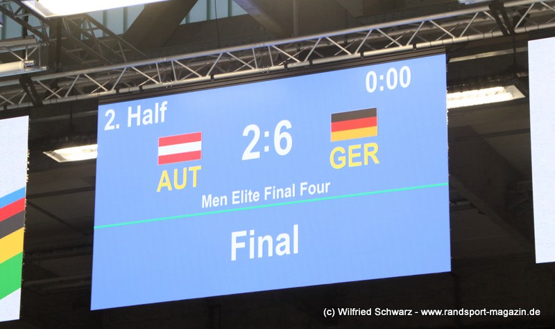 Die erste Halbzeit des Finales war sehr ausgeglichen. Schon in der ersten Minute erzielten die Österreicher das erste Tor, rund eine Minute vor Schluss der ersten Halbzeit konnten die Deutschen aber zum 1:1 ausgleichen. «Aber wir sind bei uns geblieben», sagte Mlady. Nach der Halbzeit waren beide Teams zunächst weiter gleichauf, dann gab es aber kein Halten mehr. Die Deutschen erhöhten auf 2:1, dann erlaubten sich die Österreich zwei kapitale Fehler, sodass es schnell 4:1 stand. Das Spiel endete schließlich mit 6:2 Toren für Mlady/Kopp. «Einen schöneren Karriere-Abschied kann man sich nicht vorstellen», so Kopp.