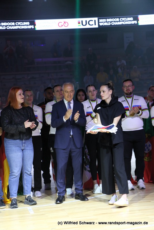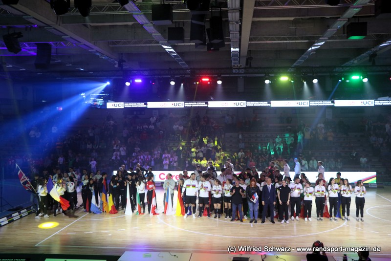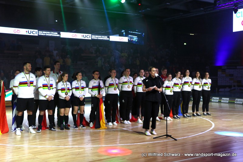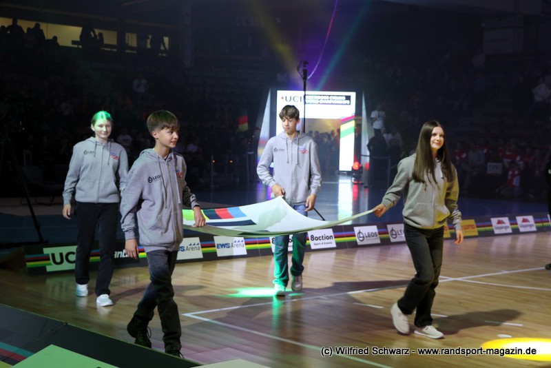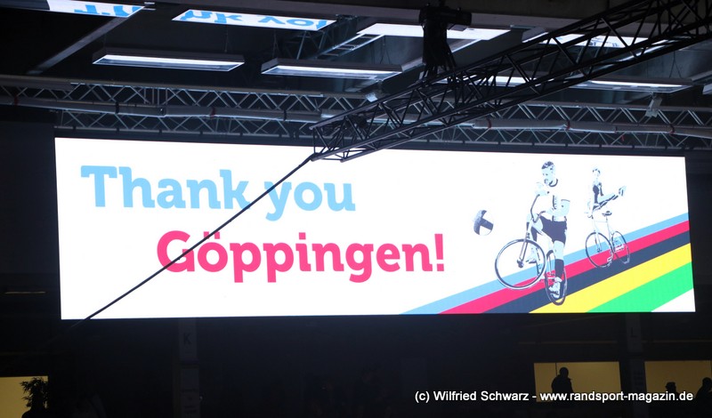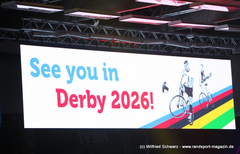 In der Closing Ceremony wurde die UCI-Fahne an den Ausrichter der WM-2026 übergeben. – Thank You Göppingen – See You in Derby 2026!