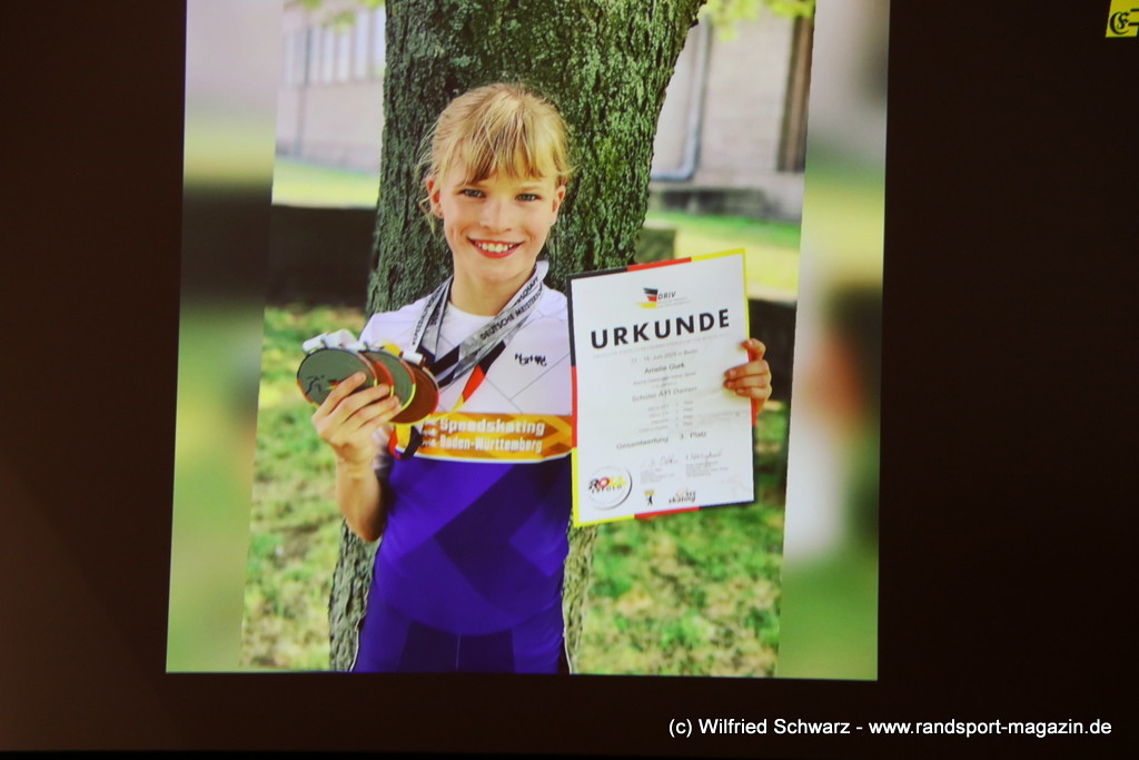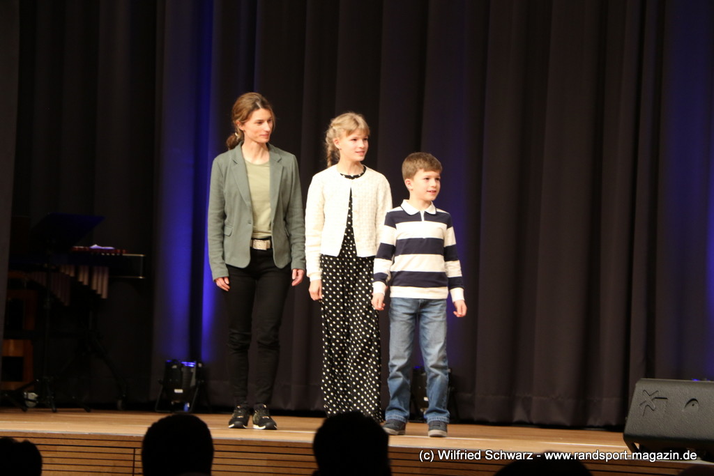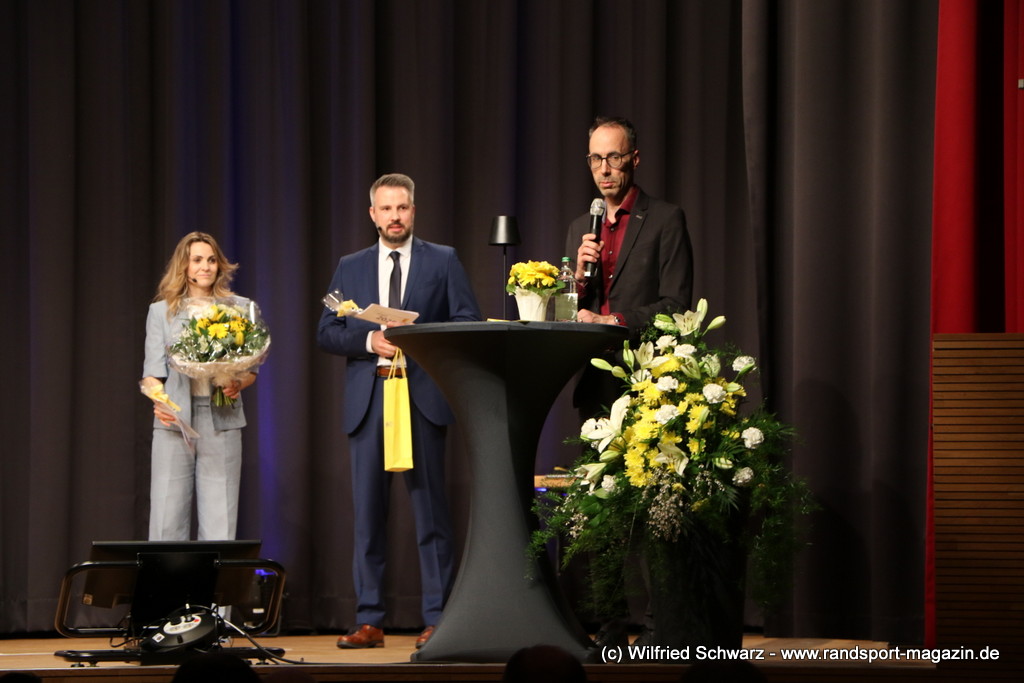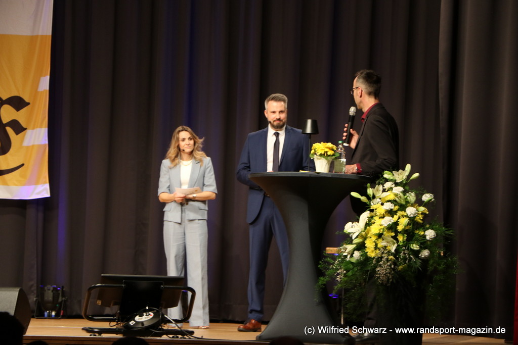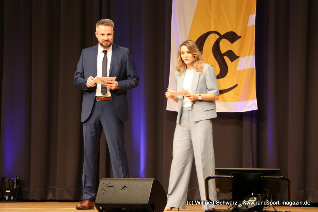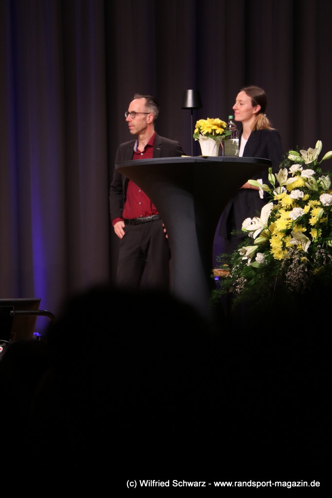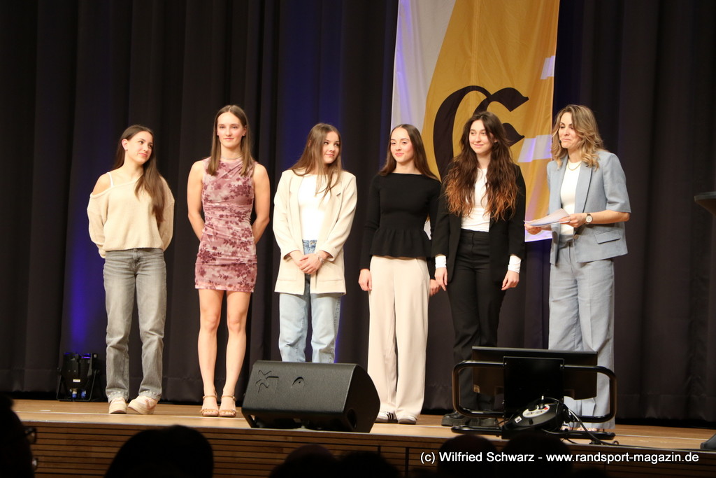 Gekonnt, charmant und mit sportlichem Sachverstand moderiert wurde der Abend von Isabel Meier-Lang und Philipp Gaiser, die auch Leonie Beck, einer der erfolgreichsten deutschen Freiwasser-Schwimmerinnen, begrüßen durften. Leonie Beck. Die aus Augsburg stammende Schwimmerin begann ihre Karriere im Beckenschwimmen, bevor sie sich dann auf das Freiwasserschwimmen spezialisierte. Sie gehört zu den erfolgreichsten deutschen Freiwasser-Schwimmerinnen der Gegenwart. Sie nahm bereits an drei Olympischen Spielen teil und gewann zahlreiche Medaillen bei Europa- und Weltmeisterschaften. Sie erzählte im Interview mit den beiden Moderatoren über Hochs und Tiefs in ihrem Sport. Auch im Freischwimmen musste sie viel über Taktik lernen, um an der richtigen Stelle um die Bojen zu schwimmen oder während eines 10 KM Rennens – das knapp 2 Stunden dauert- Nahrung aufzunehmen. In einer Trainingsgruppe in Rom (Italien) fand sie nach Corona die Richtige Motivation. Auch über ihre größte Niederlage bei den Olympischen Spielen 2024 in Paris sprach sie. „Das war nicht meins, da musste man viel gegen den Strom schwimmen,“ so Leonie Beck. „Für die eine Strecke auf der Seine brauchte man 2 Minuten, während man in die andere Richtung 15 Minuten benötigte“. Sie gab auch den anwesenden Sportlern einen Rat. „Vergesst nicht nebenher eine Ausbildung oder Studium zu machen“, sprach sie auch ihrer Erfahrung. „Habt immer noch einen Plan B neben dem Sport in der Tasche.“ Derzeit konzentriert sie sich auf ihr Studium, ist daneben noch Markenbotschafter für einen Sportartikel-Hersteller, bietet Eventbesuche an und hält an verschiedenen Events Vorträge. (www.leonie-beck.de)