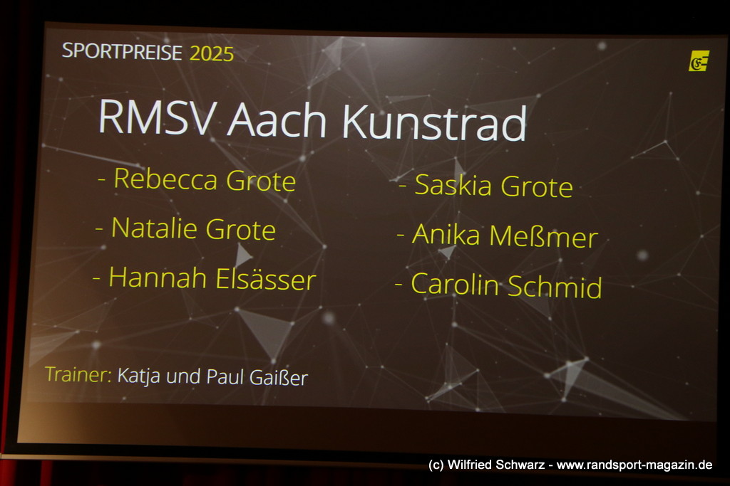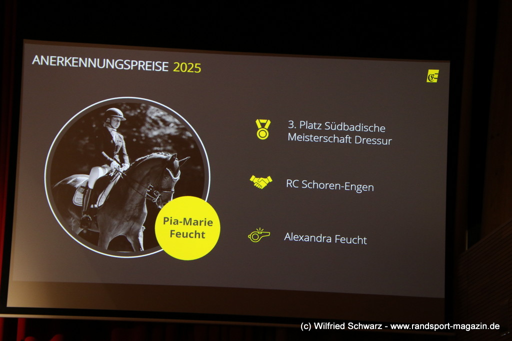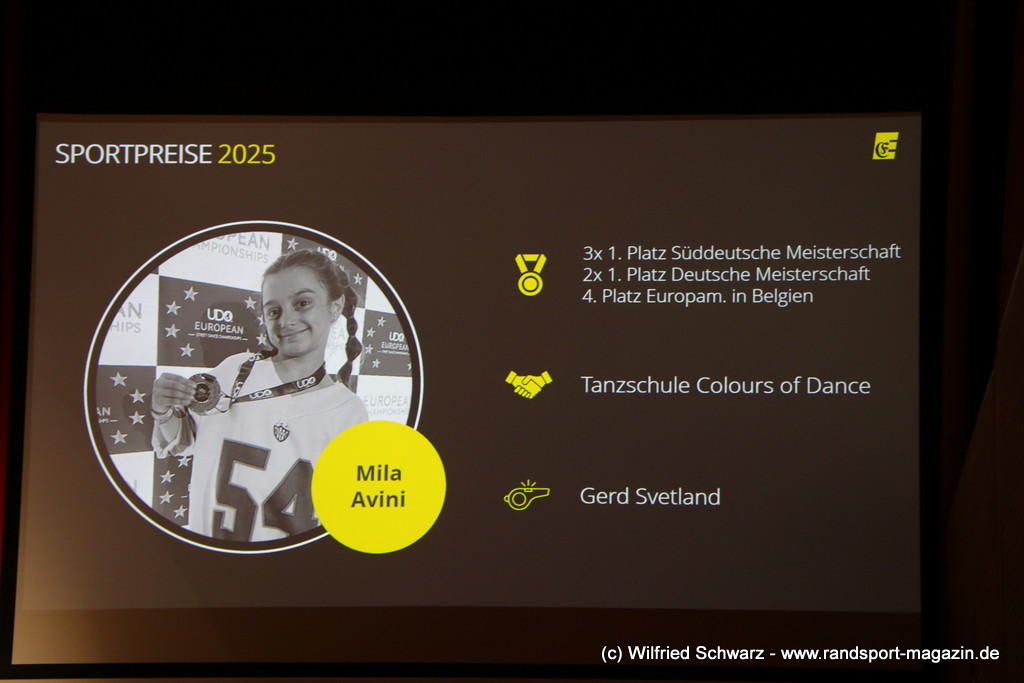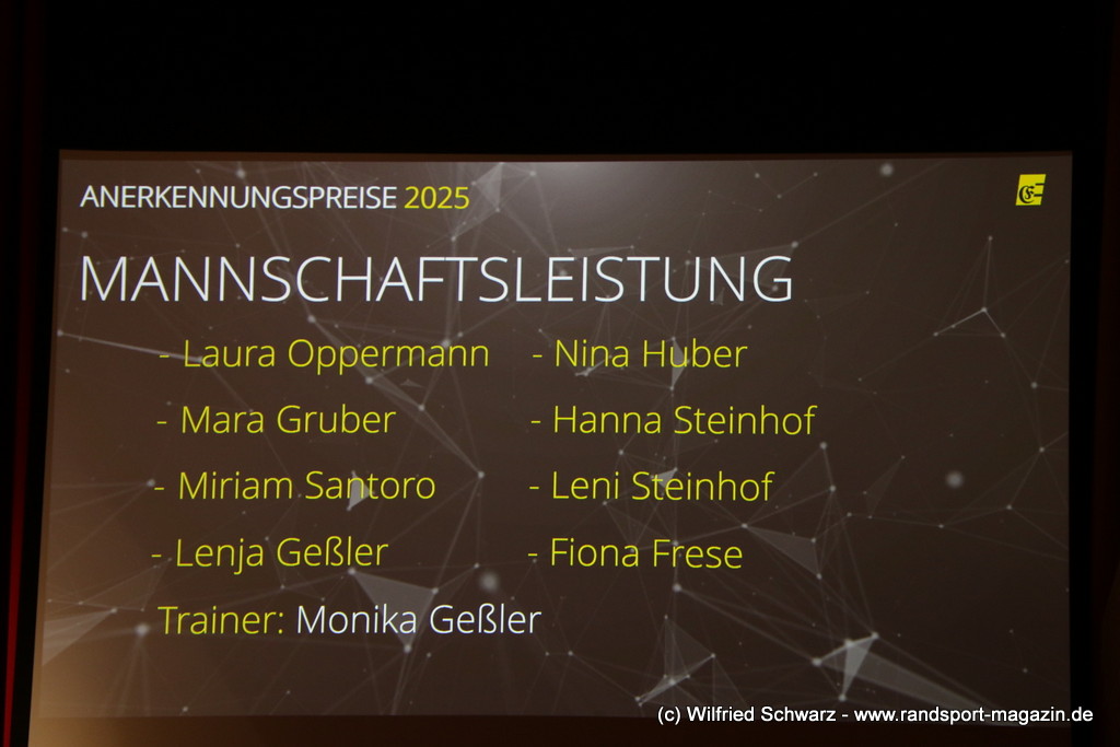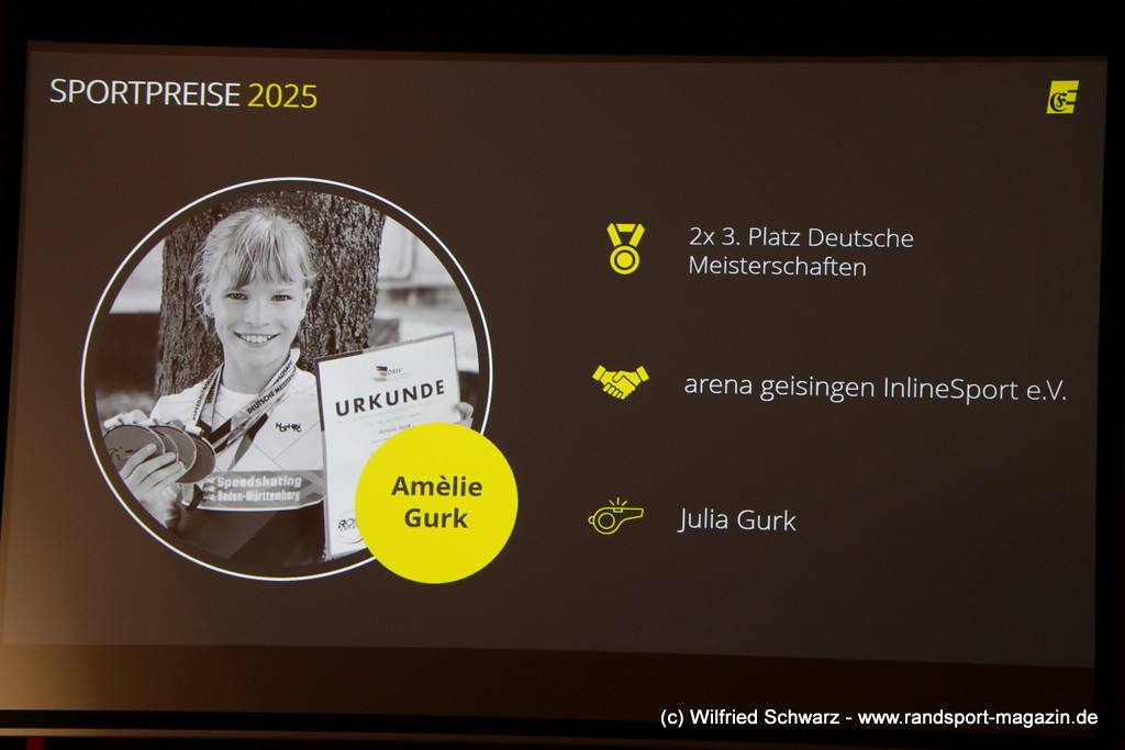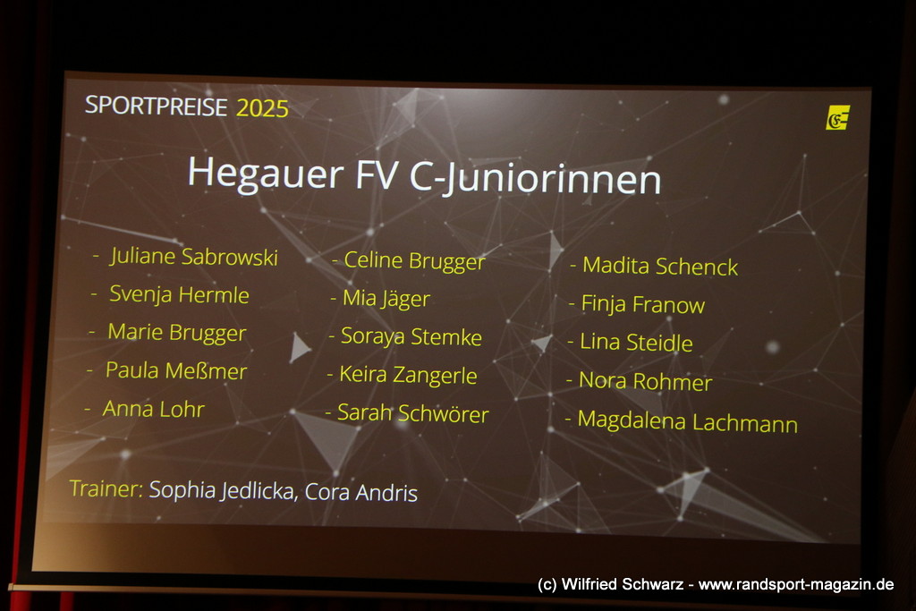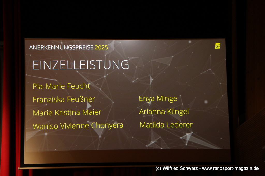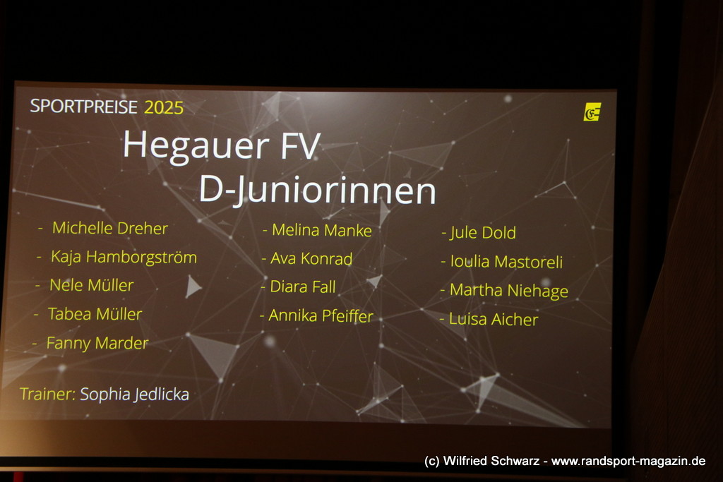 Die beeindruckende Zahl der Sportlerinnen und Sportler in den unterschiedlichsten Sportarten wie vielfältig das Angebot der Engener und Hegauer Vereine ist – und wie viele Menschen dieses begeistert nutzen. Es wurden Anerkennungspreise im Reiten, Leichtathletik und Turnen vom Sportausschuss vergeben. Sportpreise gab es für Erfolge an einer WM, EM, DM, Badischen oder Süddeutschen Meisterschaften in den Sportarten Tischtennis, Schießen, Fußball, Inline-Skating, Tanzen, Karate, Kunst- und Einrad. Einen Sonderpreis erhielt der Skiclub Engen als Verein des Jahres 2025 im Skiverband Schwarzwald. Weitere Sportpreise gab es im Dressur-Reiten, Western-Reiten, Berglauf und in der Leichtathletik.